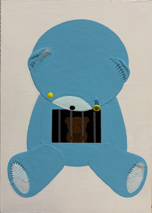 この度はご覧いただきありがとうございます。 2025年制作。 アクリル絵の具を使用し、 モデリングペーストを混ぜて、少し立体感があるよう表現しています。 大きなくまの体には窓があり、その中に小さなくまがいます。 外から見える姿と、内側にひっそりと存在するもう一人の自分。 同じ形をしていても、その在り方は少しずつ違います。 窓の中にいる小さなくまは、 普段は意識されにくい気持ちや、言葉にならない感情を象徴しています。 覗くように見ることで、 見る人それぞれの「内側」を重ねてもらえたら嬉しいです。 2025年 182 × 257 mm アクリル、ボタン、糸、ガーゼ、羊毛フェルト、鏡、木製パネル coKUMADO. 「自分の中の自分」をテーマにしております。 ※発送までに10〜14日ほどお時間をいただいております。 ひとつひとつ丁寧に梱包し、お送りいたします。 ※状況により、発送までにお時間をいただく場合がございます。 ※ キャンバス裏面は制作時の絵の具の付着がございますが、作品としての状態に問題はありません。 ※ 濃いお色はアクリル絵の具の特性により、 触れたり擦れたりすると白っぽく見える場合があります。 素材と表現による風合いとしてお楽しみいただければ幸いです。