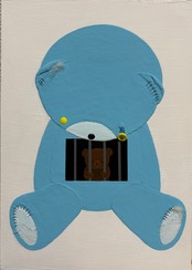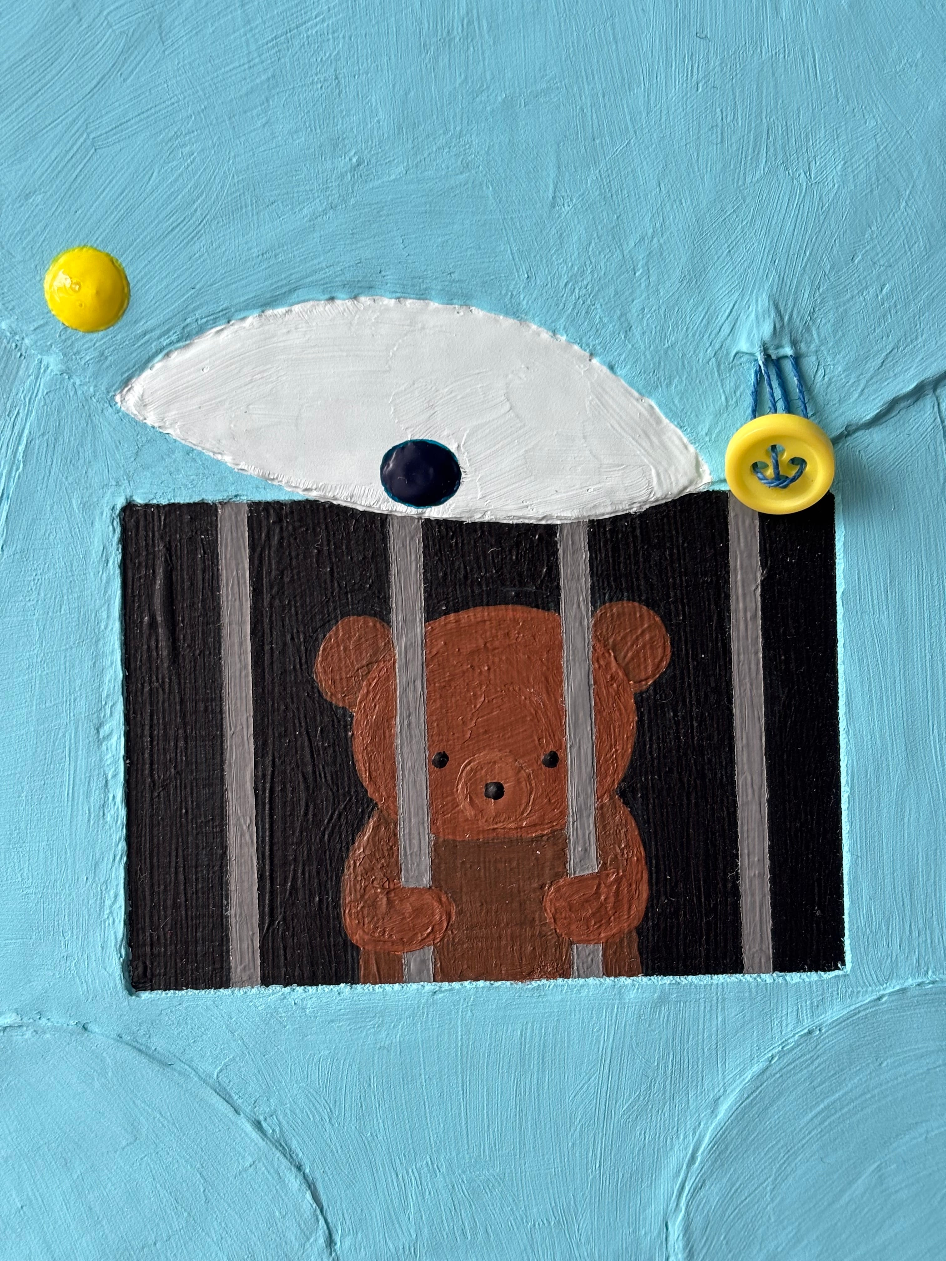 アクリル、ボタン、糸、ガーゼ、羊毛フェルト、木製パネル