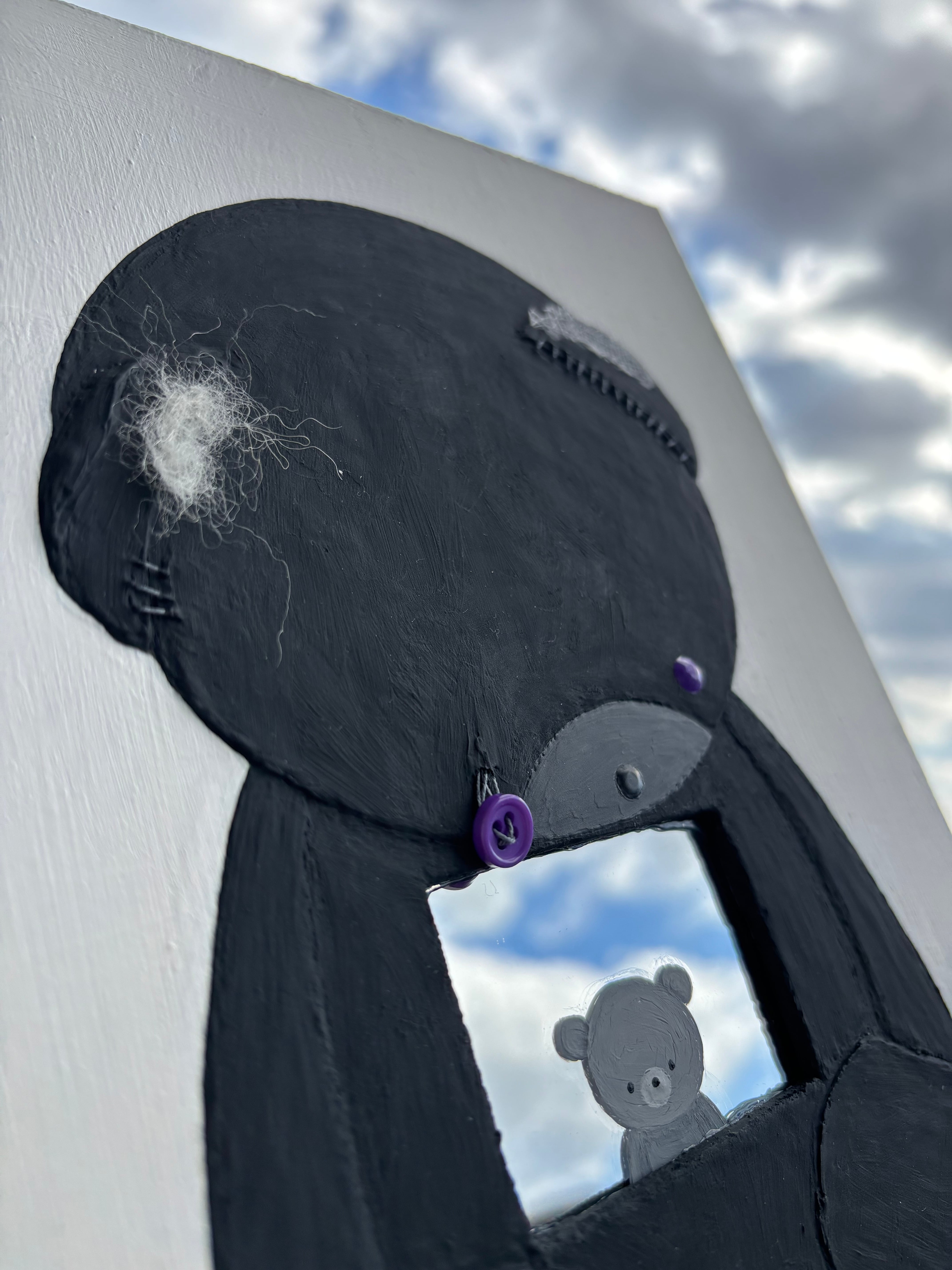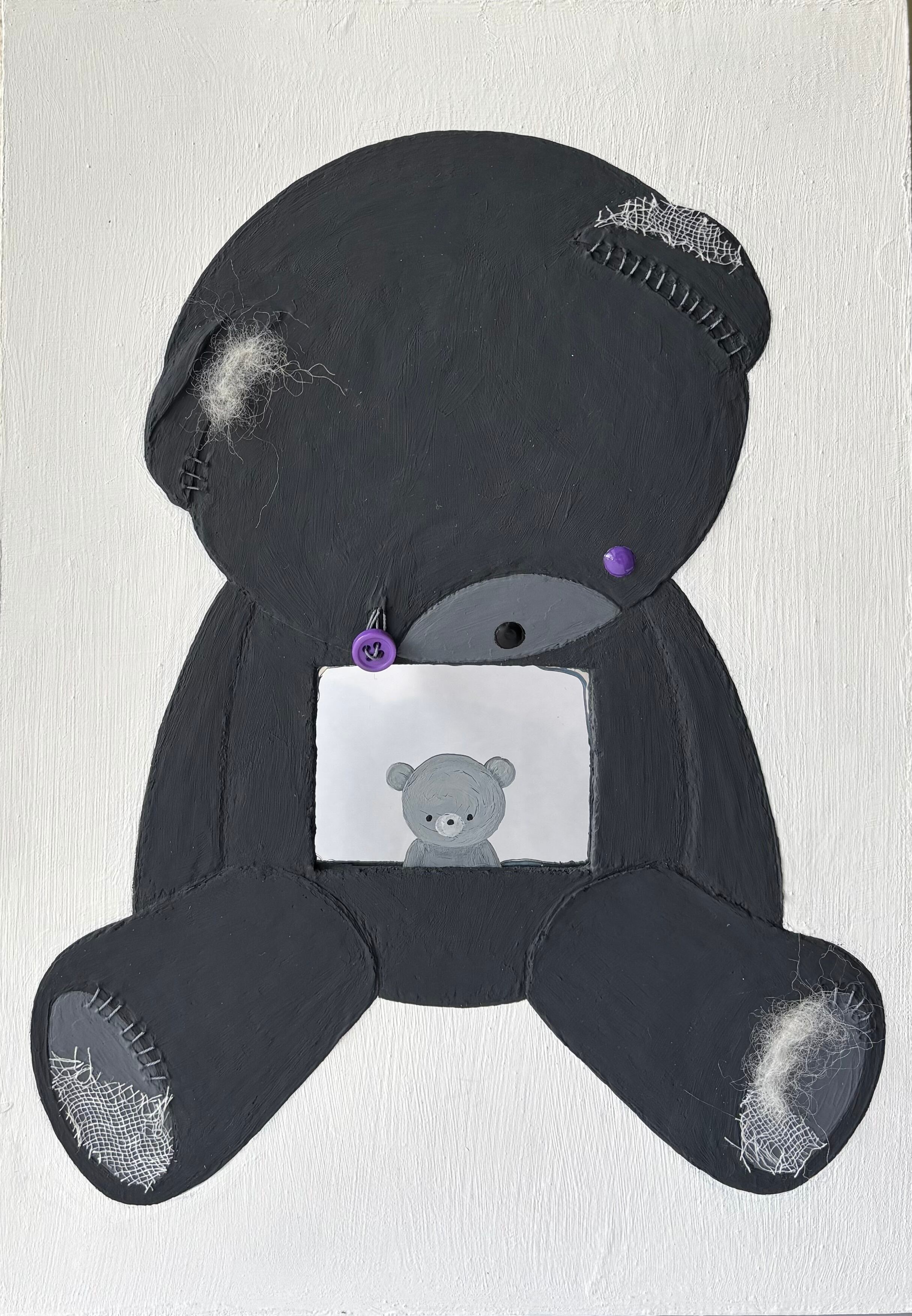 アクリル、ボタン、糸、ガーゼ、羊毛フェルト、鏡、木製パネル
